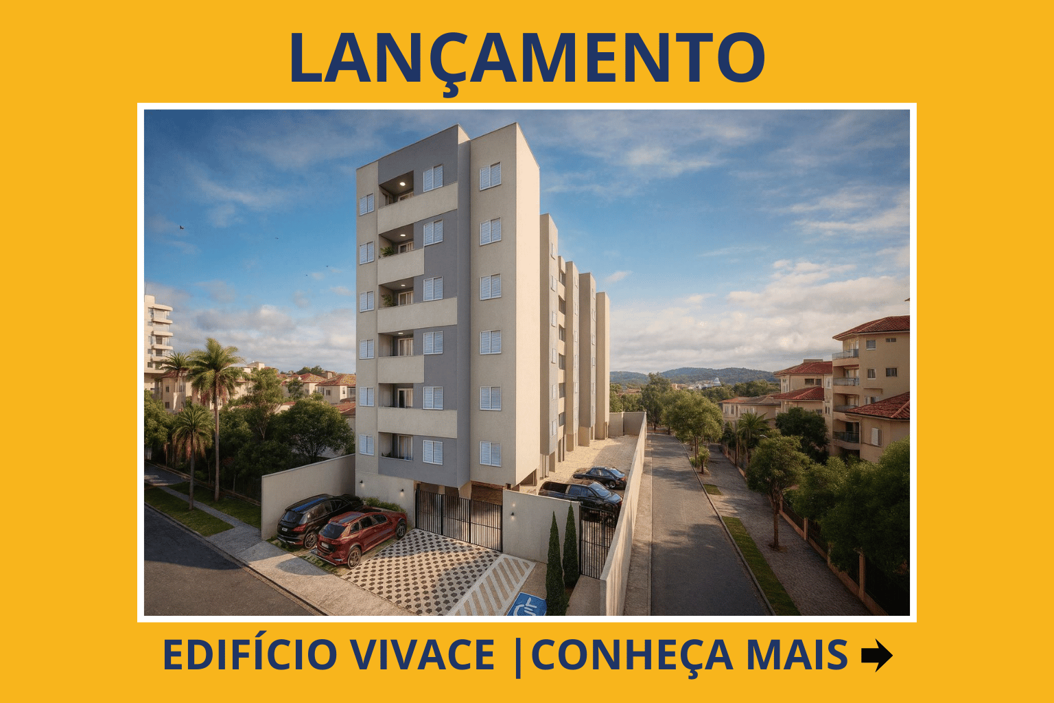 O EDIFÍCIO VIVACE é um prédio com 24 apartamentos com e sem suíte, sendo de 54,1 m2 e 62,2 m2 respectivamente, além de elevador, sacada, sala de festa, sala de academia, algumas garagens cobertas e muito mais.